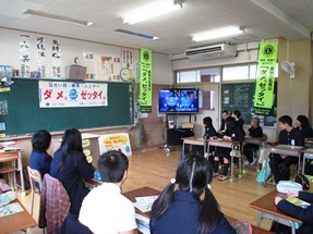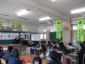 6年生2クラス50名の児童に対して、各クラス2時間目と3時間目を利用して、薬物乱用防止のDVDと講義やキャラバンカー内で薬物乱用の恐ろしさを勉強しました。(写真がありませんでした)