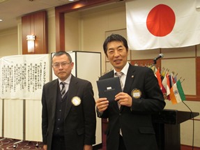 元地区ガバナーの月として、三上元地区ガバナーにご挨拶をしていただき、花束を贈呈いたしました。