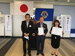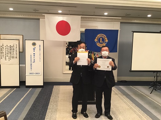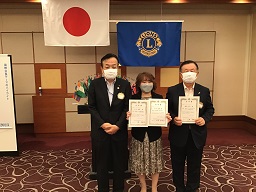 また、前地区ガバナー感謝状、地区ガバナー任命書・委嘱書の伝達並びにLCIFキャンペーン100アワードの伝達をしました。
