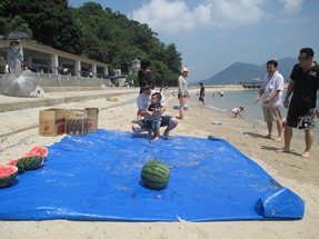 とても良い天気で、海水浴日和。浜辺で『すいか割り』をして…あっという間の滞在となりました。
