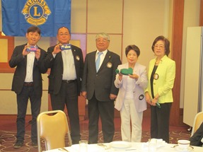 モナークシェブロン賞の伝達と100周年記念スポンサーバッジと会員増強ピンの伝達も行いました。